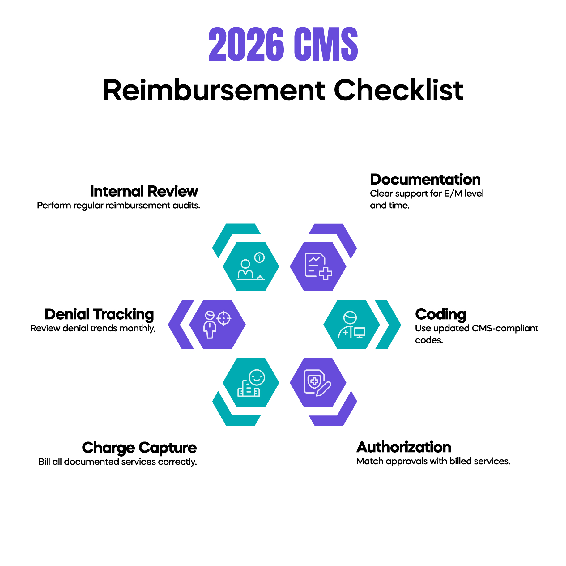 Practices must also align charge capture workflows with updated reimbursement rules. Services performed but not documented properly are unlikely to be reimbursed. Similarly, services documented without clear medical necessity may be downcoded.